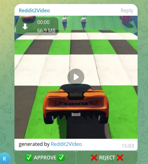 Once a post was selected, the bot ran the entire process from start to finish, then sent the video back to us on Telegram in a designated pending-videos channel. This allowed us to review the generated videos and manually decide if they were good enough for upload. We could approve or reject each video. If a video was rejected, it would be deleted. Approved videos were sent to a queue folder, which would then be processed for automatic YouTube upload.