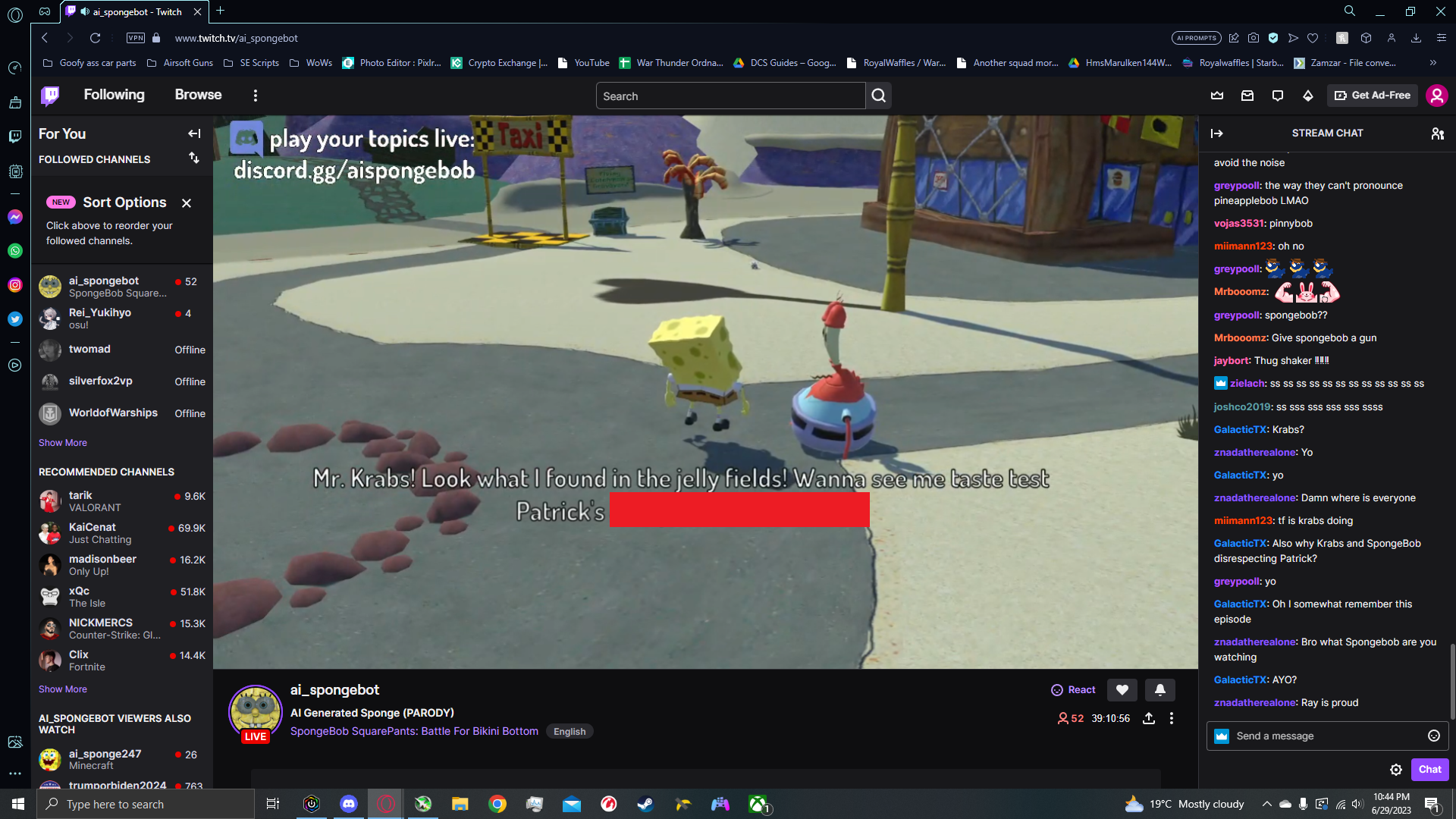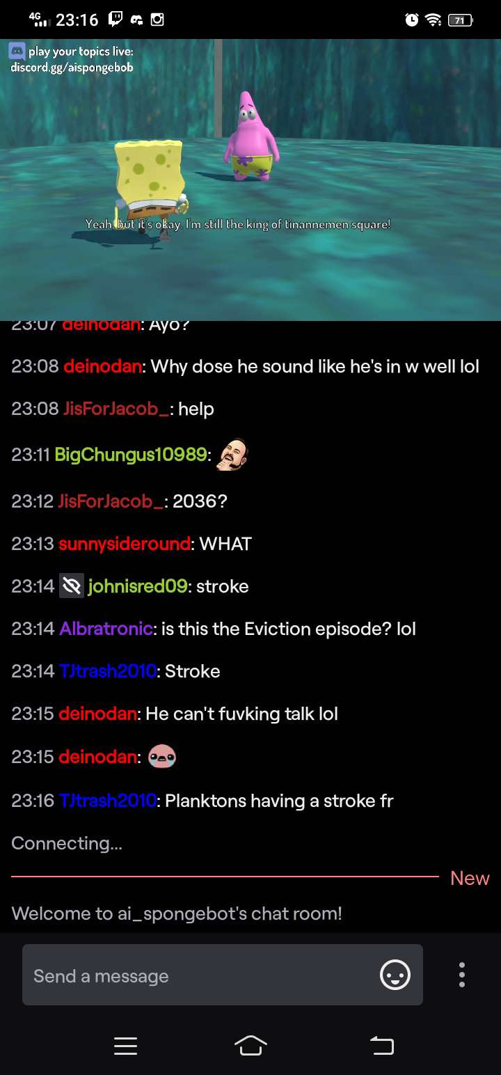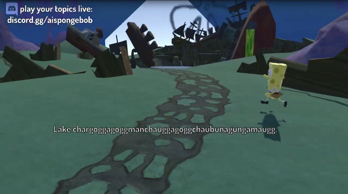 The livestream was... surreal. It was a kind of simulation where Spongebob characters moved around a 3D environment, enacting conversations using AI-generated voices and scripts.