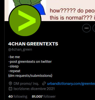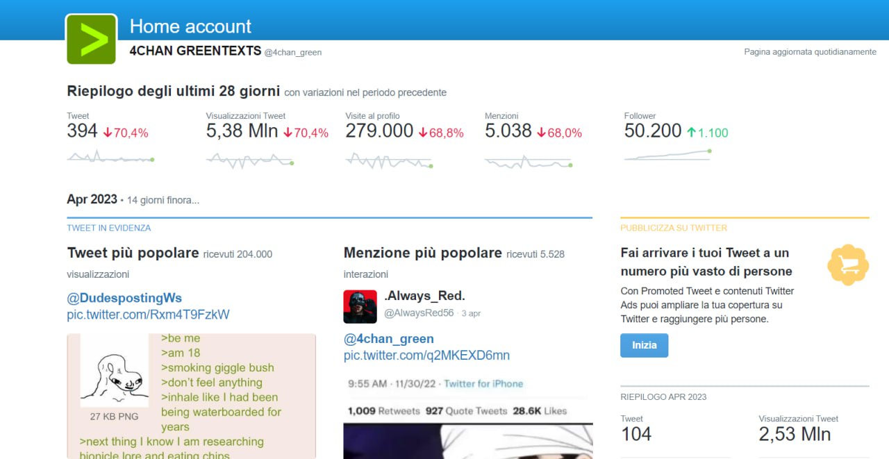 The only account that remains is the original 4chan_green, sitting at around 80k followers. I’m honestly scared to even touch it.